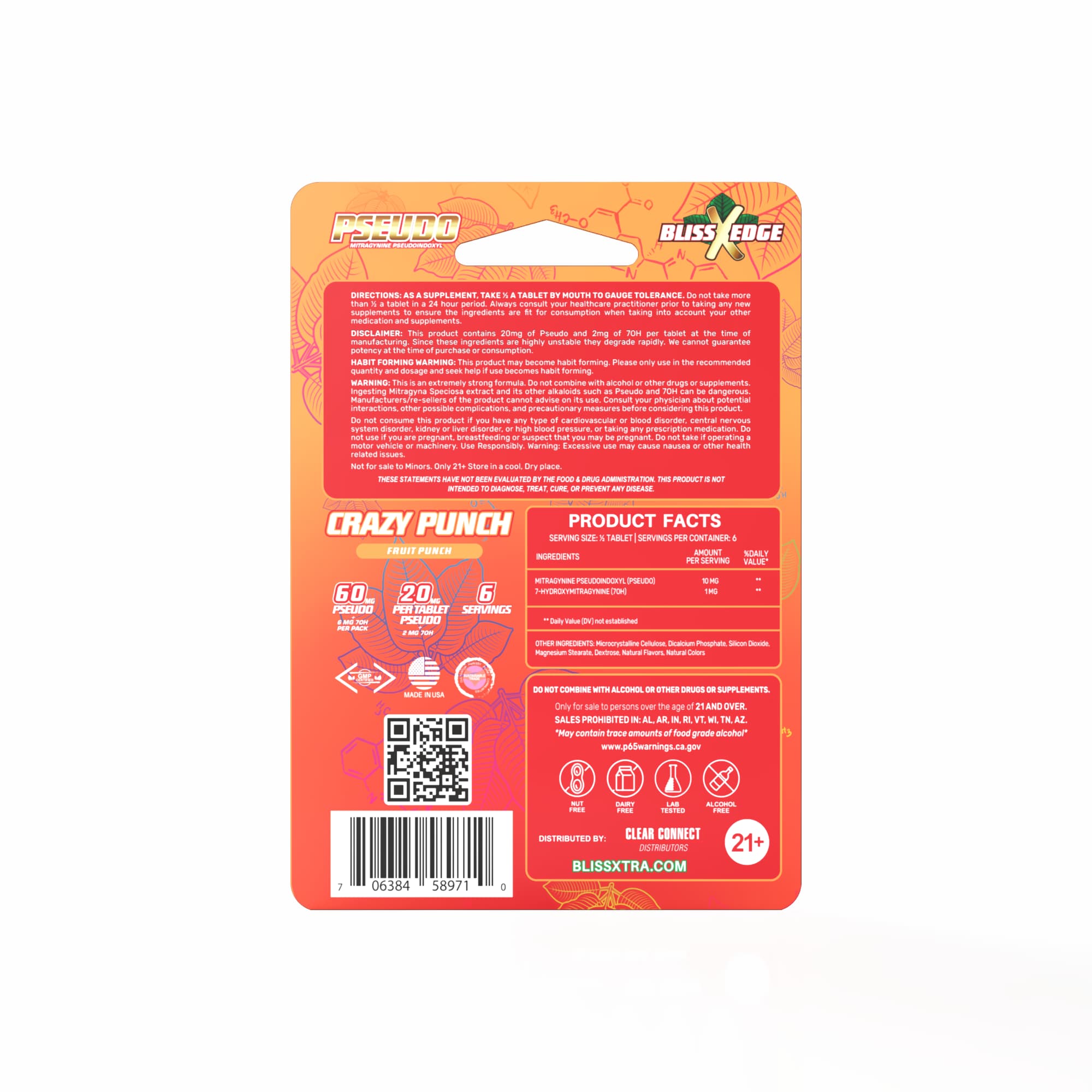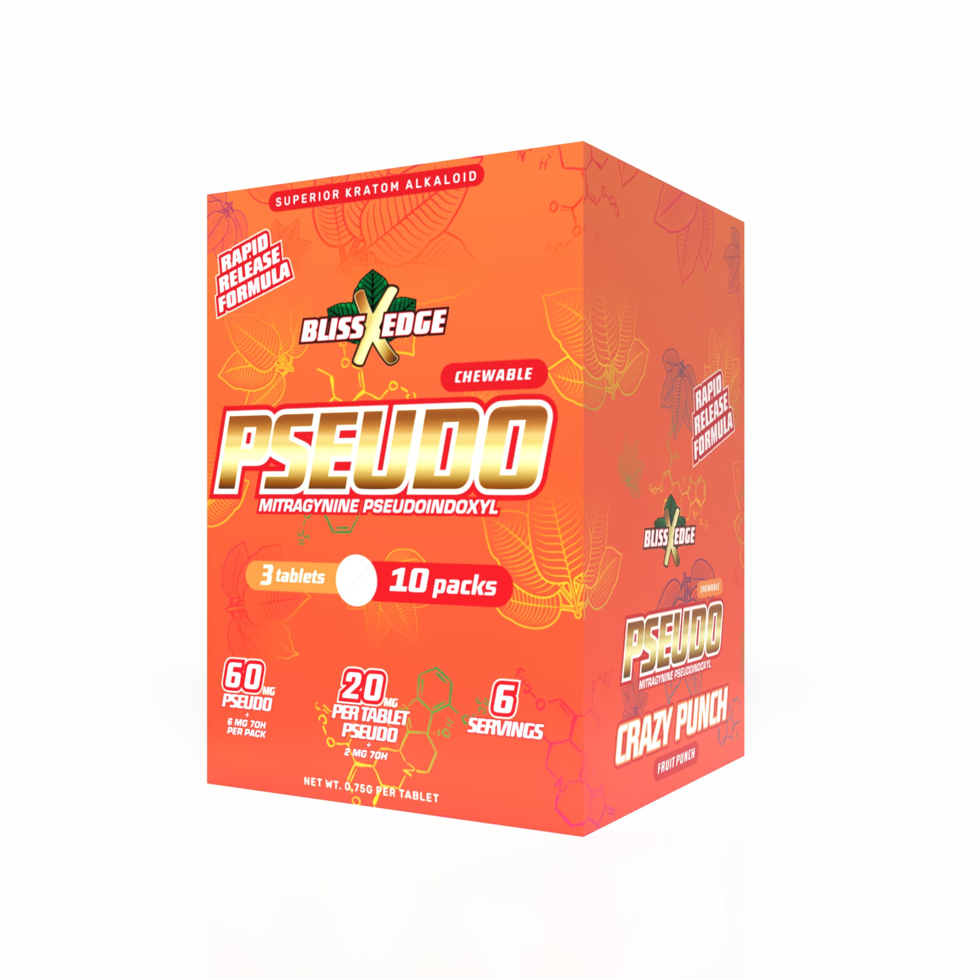 Disclaimer: This product contains 20mg of Pseudo and 2mg of 7OH per tablet at the time of manufacturing. Since these ingredients are highly unstable they degrade rapidly. We cannot guarantee potency at the time of purchase or consumption.